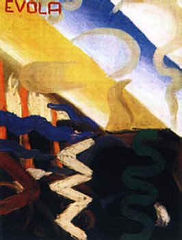 It was during the Dadaist period of his life that Evola started reading about esotericism. He met neo-Pythagorean occultist Arturo Reghini in the early 1920s. He quit painting in the early 1920s, and stopped writing poetry in 1924–not to pursue either again for more than 40 years (according to Gwendolyn Toynton’s essay “Mercury Rising” at Primordial Traditions). Although Evola left the Dadaist movement after a few years, in an interview in 1970 he said that the movement even today “remains unsurpassed in the radicalism of its attempt to overturn not only the world of art, but all aspects of life” (Cinnabar, p. 257).