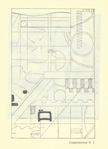 The following two works were published in Evola’s 1920 book Arte astratta: Posizione teorica, 10 poemi, 4 composizioni (Rome: P. Maglione & G. Strini). You can see the other two compositions in a online scan of the book at the website of The International Dada Archive at the University of Iowa Libraries. Evola’s essay “Abstract Art” is available in English translation in the book Dadas on Art.