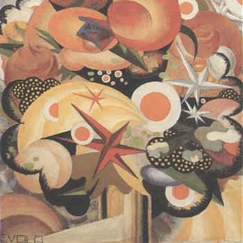 Evola’s intellectual autobiography, The Path of Cinnabar, provides insights into his foray into the art world in the chapter “Abstract Art and Dadaism.” He was attracted to Dada for its radicalism, since it “stood for an outlook on life which expressed a tendency towards total liberation, conjoined with the upsetting of all logic, ethic and aesthetic categories, in the most paradoxical and baffling ways” (p. 19). He quotes Tzara: “What is divine within us, is the awakening of an anti-human action” and cites a Dadaist philosophy with a premise in keeping with Evola’s thoughts on the Kali Yuga: