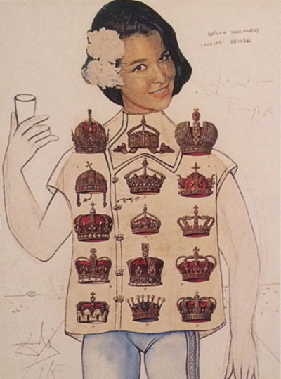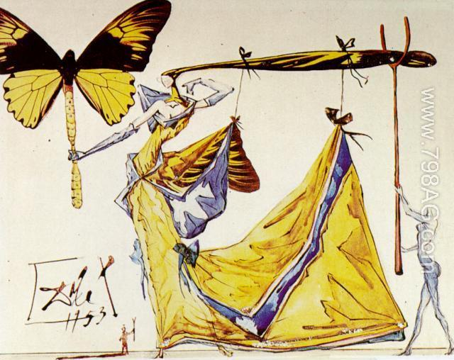 Dalí entered a fashion contest in New York in 1953 (he and his wife moved there during the war and stayed for eight years). The theme of the contest was “The Woman of the Future.” The dress Dalí designed, shown below, was so large that photographer Philippe Halsman couldn’t photograph it in the street; they had to go to the roof of a building.